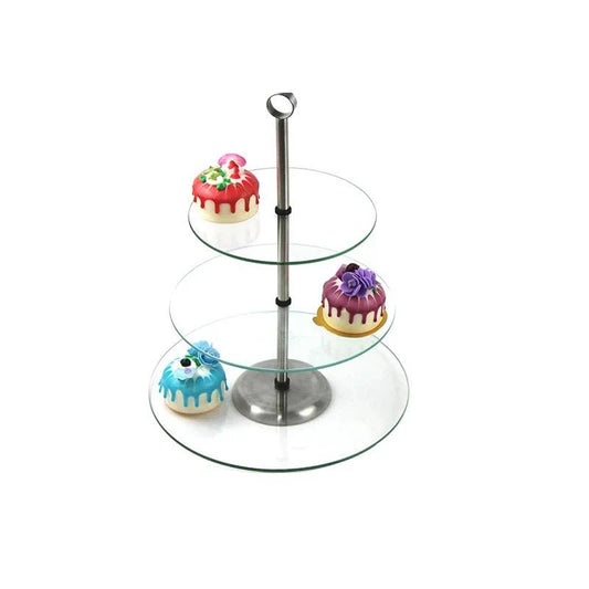 Royal Cuisine 3-Tier Glass Cake Stand with Stainless Steel Handle