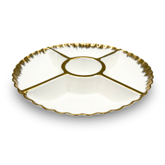 Strong White and Gold Crockery 5-Compartment Serving Tray