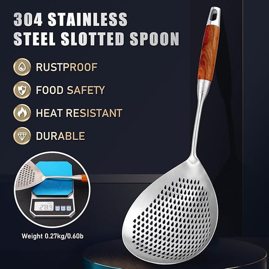 Large Slotted Spoon with Long Wooden Handle – 16 Inch