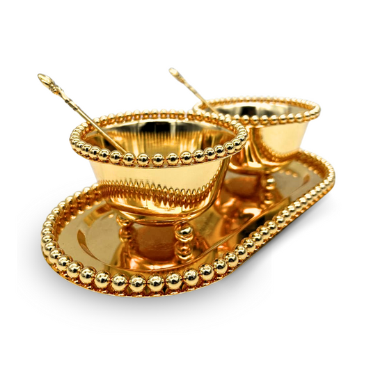 Traditional Gold Table Serving Set with 1 Tray, 2 Bowls, and 2 Spoons