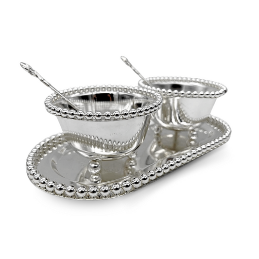 Traditional Silver Table Serving Dish Set with 1 Tray, 2 Bowls, and 2 Spoons