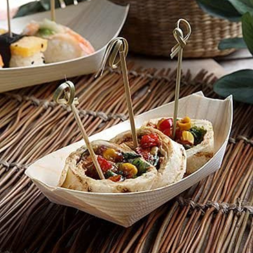 Papstar Disposable Wooden Boat Plates/Bowls - 50 Pack, 11 x 6.5 cm