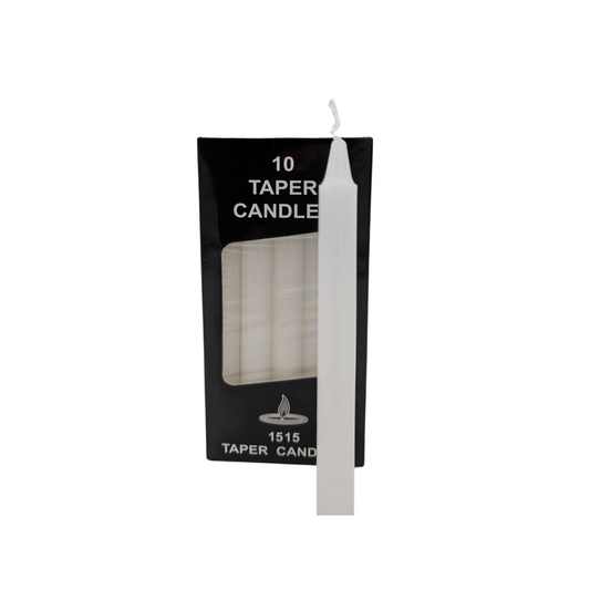 Set of 10 Taper Candles – Available in Red or White (15 cm x 1.5 cm)