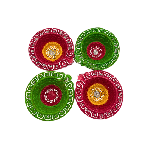 Set of 4 Handmade Traditional Multi-Color Clay Diwali Diyas