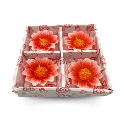 Set of 4 Beautiful Flower Shape Peach Candles