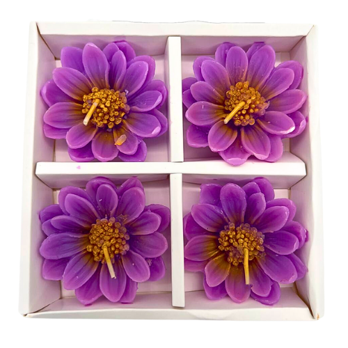 Set of 4 Beautiful Flower Shape Purple Candles