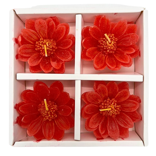 Set of 4 Beautiful Flower Shape Red Candles