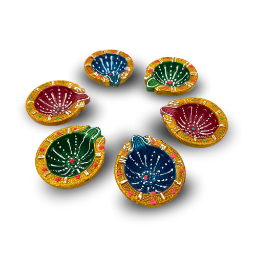 Set of 6 Handmade Traditional Multi-Color Diwali Diyas in Clay