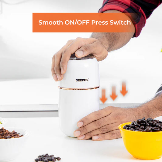 Geepas White Capsule Press-Down Coffee Grinder & Mixer Grinder - 80g
