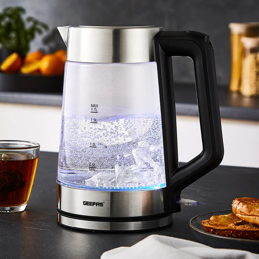 Geepas Illuminated LED Electric Clear Glass Kettle - 1.7L