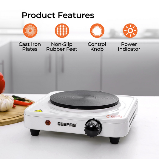 Geepas 1000W Single Electric Hot Plate - Tabletop Cooker