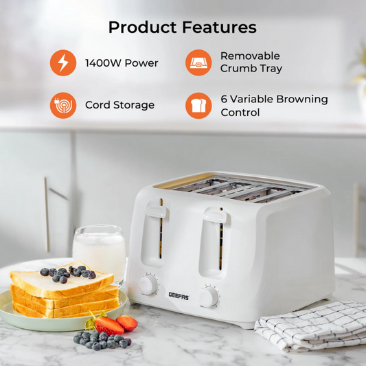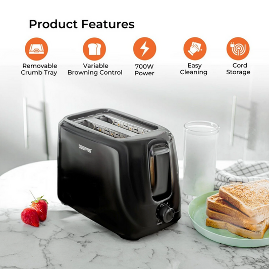 Geepas Black 2-Slice Toaster With Adjustable Browning Control
