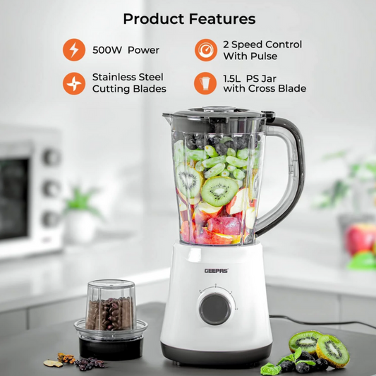 Geepas 2-in-1 White Smoothie Blender and Coffee Grinder