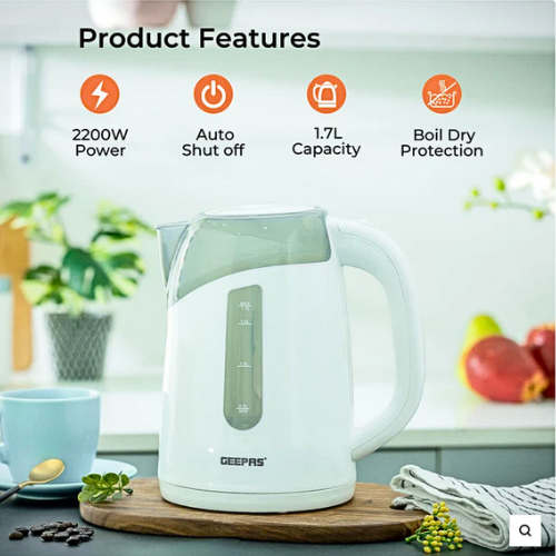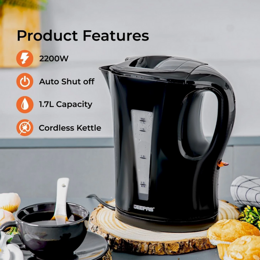 Geepas 1.7L Fast-Boil Cordless Black Electric Kettle