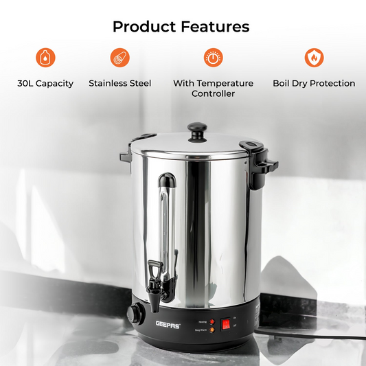 Geepas 30L Stainless Steel Electric Urn and Water Boiler