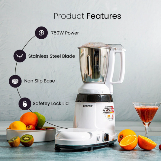 Geepas 3-In-1 Wet and Dry Electric Indian Mixer Grinder 750W