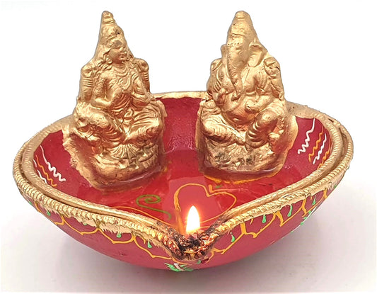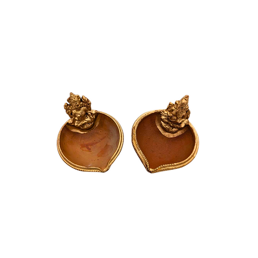 Handmade Clay Diya with Golden Painted Edges – Ganesh & Laxmi Idol Variants