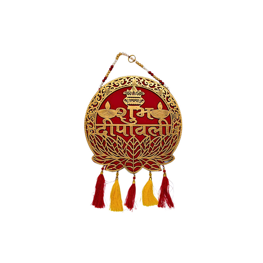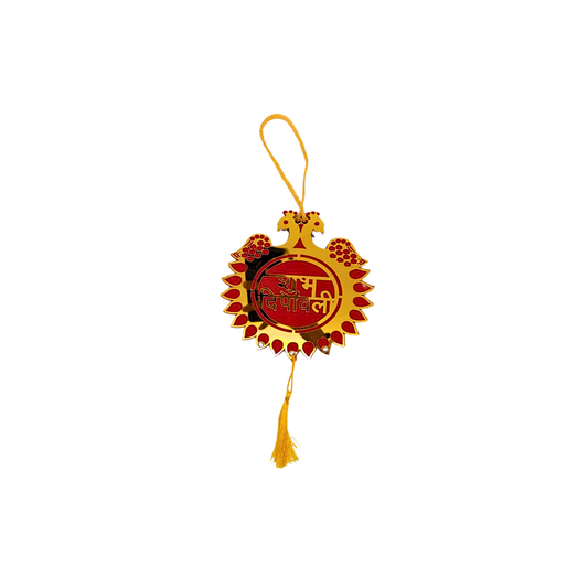Gold & Red Shubh Diwali Toran – Peacock & Diya Designs (14 cm)