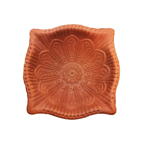 Large Square-Shaped Traditional Clay Diwali Diva/Diya