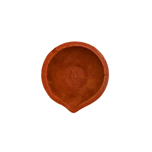 Handmade Clay Diya with Floral Design & Wide Edge - 9cm Diameter
