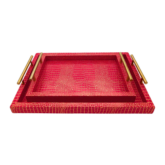 2 x Serving Trays Red with Golden Design & Handles – for Serving Drinks, Foods