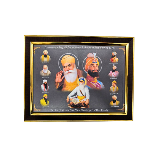 Complete Sikh Religious Gurus & Baba Deep Singh Ji Photo Collection with Frame – 3 Variants (35x27 cm)