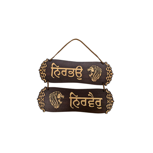 Sikh Religious Wooden 2-Piece Plaque – Brown with Golden Gurmukhi Quote