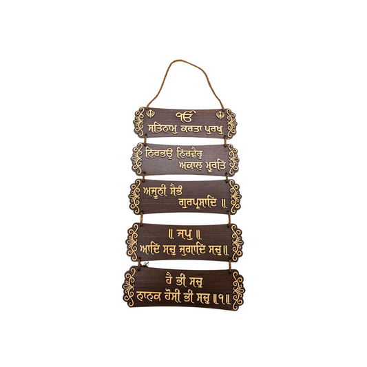 Sikh Religious Mool Mantar Wooden 5-Piece Plaque – Available in two colors