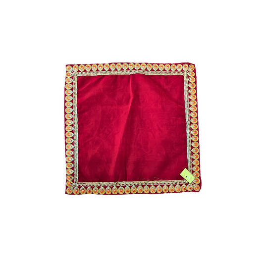 Red Embroidered Pooja Cloth with Stone Work – Ideal for God Idols & Religious Books (Available in 4 Sizes & Shapes)