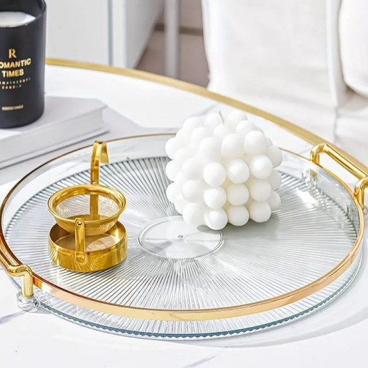Set of 3 Elegant Round Plastic Serving Trays with Golden Rim Border