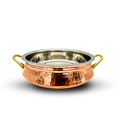 Copper and Stainless Steel Serving Dish with Handle - 20CM