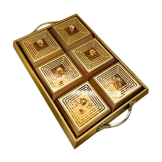 Gold Rectangle Platter Tray with 6 Compartments and Lids