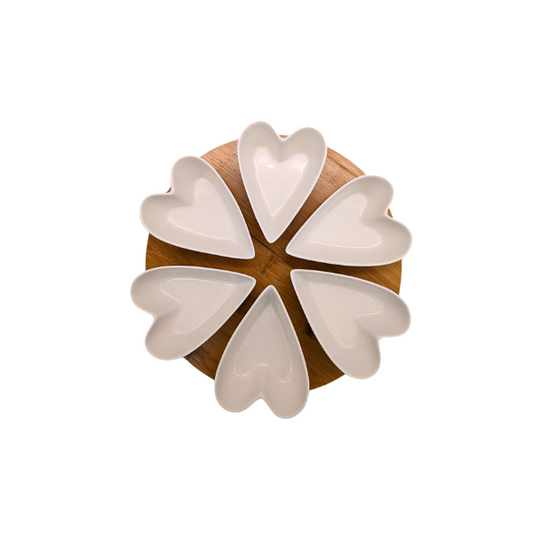 6-Piece Heart Ceramic Dish Set with Bamboo Tray