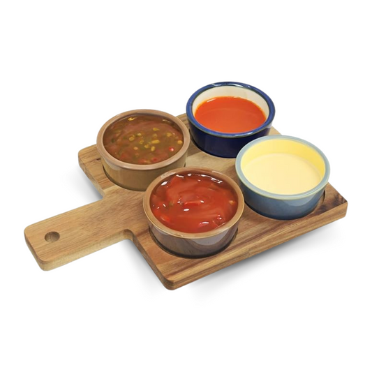 Lesser & Pavey 4 Snack Dishes & Wood Tray for Chips Dips Food Platter