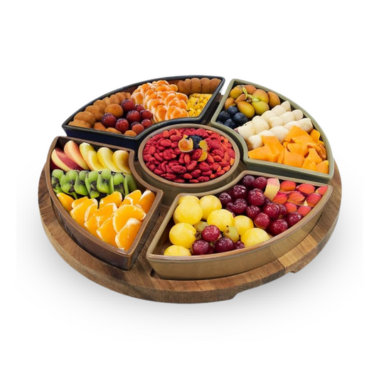 Lesser & Pavey 5 Snack Dishes & Wood Tray for Chips Dips Food Platter
