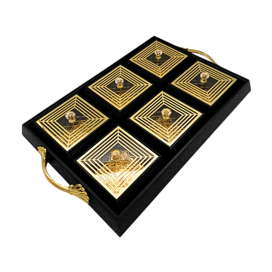 Black and Gold Rectangle Platter Tray with 6 Compartments and Lids