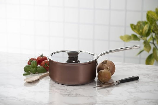 Zanussi Siena Non-Stick Aluminium Saucepan with Glass Lid, 18cm