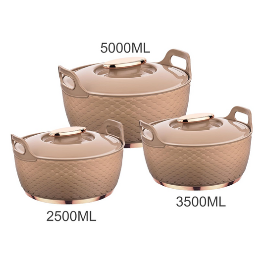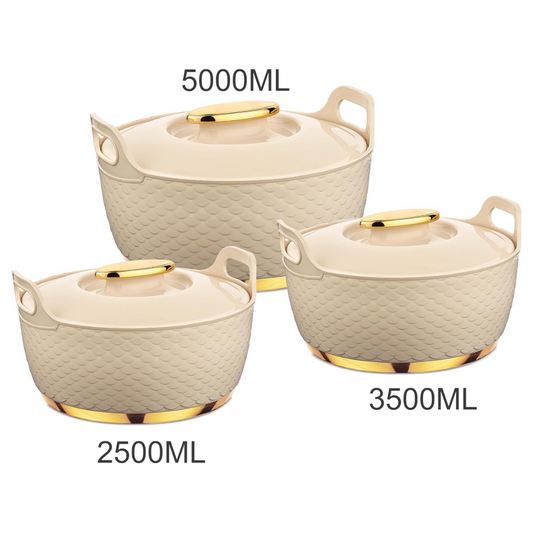 Asian Professional Celebrity Insulated Casserole Set (3 Pieces) with Lids – 1000ml, 1600ml, 2500ml (Beige)