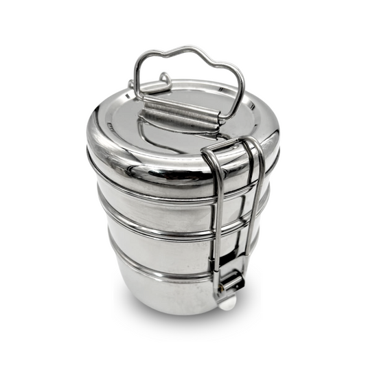 3-Tier Stainless Steel Tiffin Box - 12.5cm Diameter, 15.5cm Height