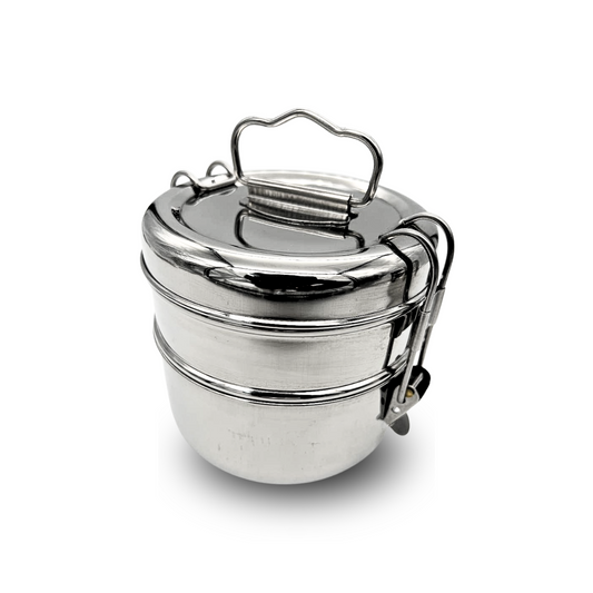 2-Tier Stainless Steel Tiffin Box - 14cm Diameter, 12.5cm Height