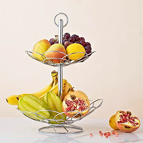 Royal Cuisine 2-Tier Silver Fruit and Vegetable Basket