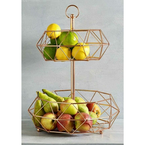 Royal Cuisine 2-Tier Rose Gold Fruit and Vegetable Basket