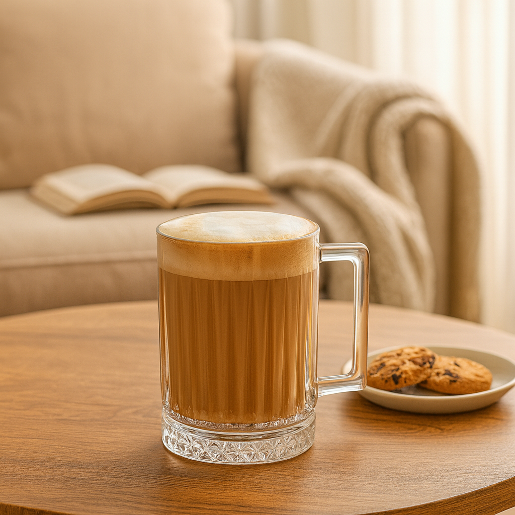 Serve your favourite beverages in style with this elegant set of 6 transparent glass mugs. Each mug features a tall ribbed design with a sturdy handle, combining both modern style and everyday practicality. With a 310ml capacity, they are perfect for enjoying hot drinks such as tea, coffee, cappuccino, and latte, as well as cold drinks like iced tea, juice, or lemonade. The crystal-clear finish adds a touch of sophistication, making them suitable for both home and restaurant use. Durable and versatile, these mugs bring both charm and functionality to your drinkware collection.