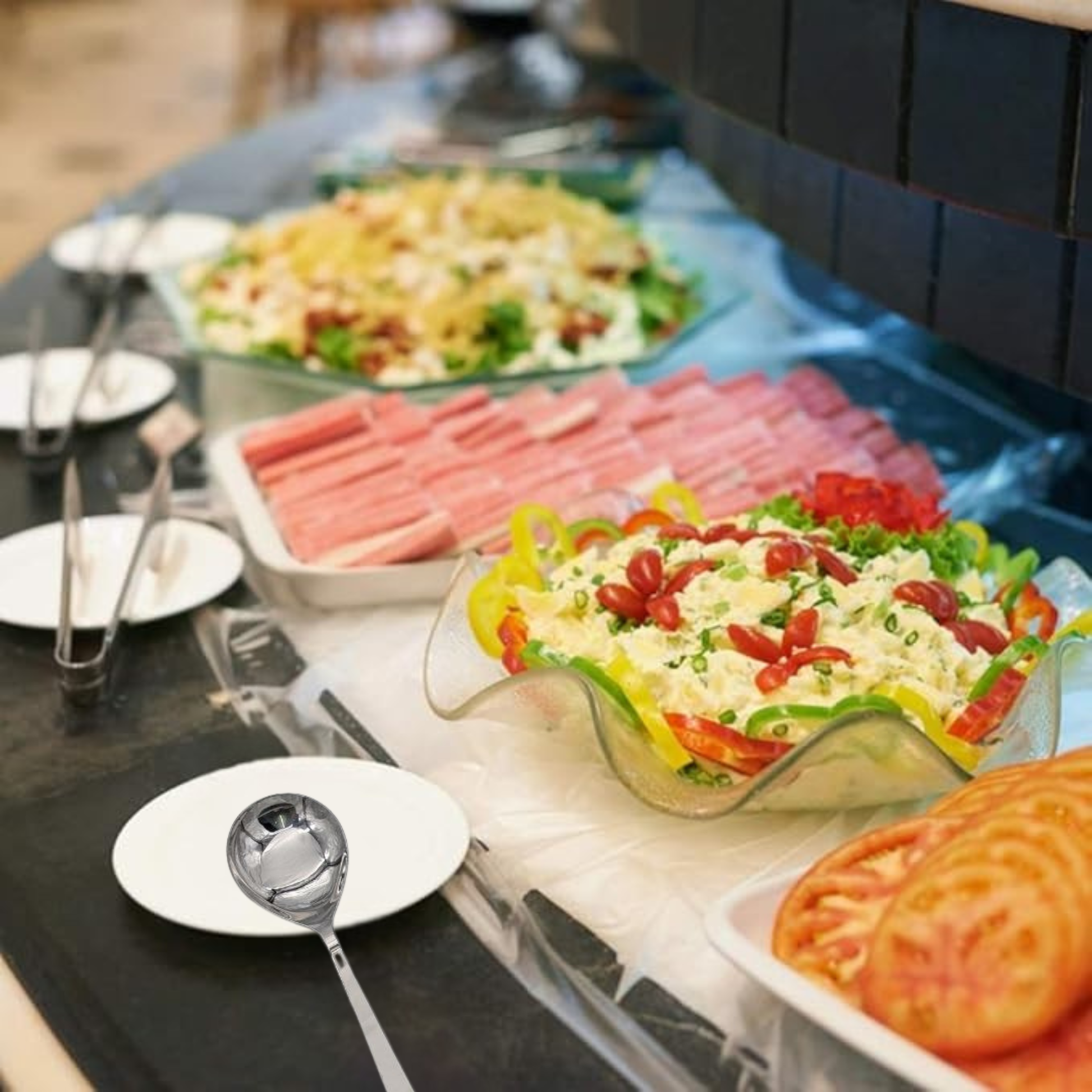 This set of 6 premium stainless steel serving spoons is perfect for everyday kitchen use, catering, and dining occasions. Crafted from high-quality stainless steel, each spoon features a mirror-polished finish that adds a sleek, modern touch to your table or buffet setup. Designed for durability and long-lasting shine, these spoons are resistant to rust, staining, and corrosion, making them ideal for both home and commercial use.