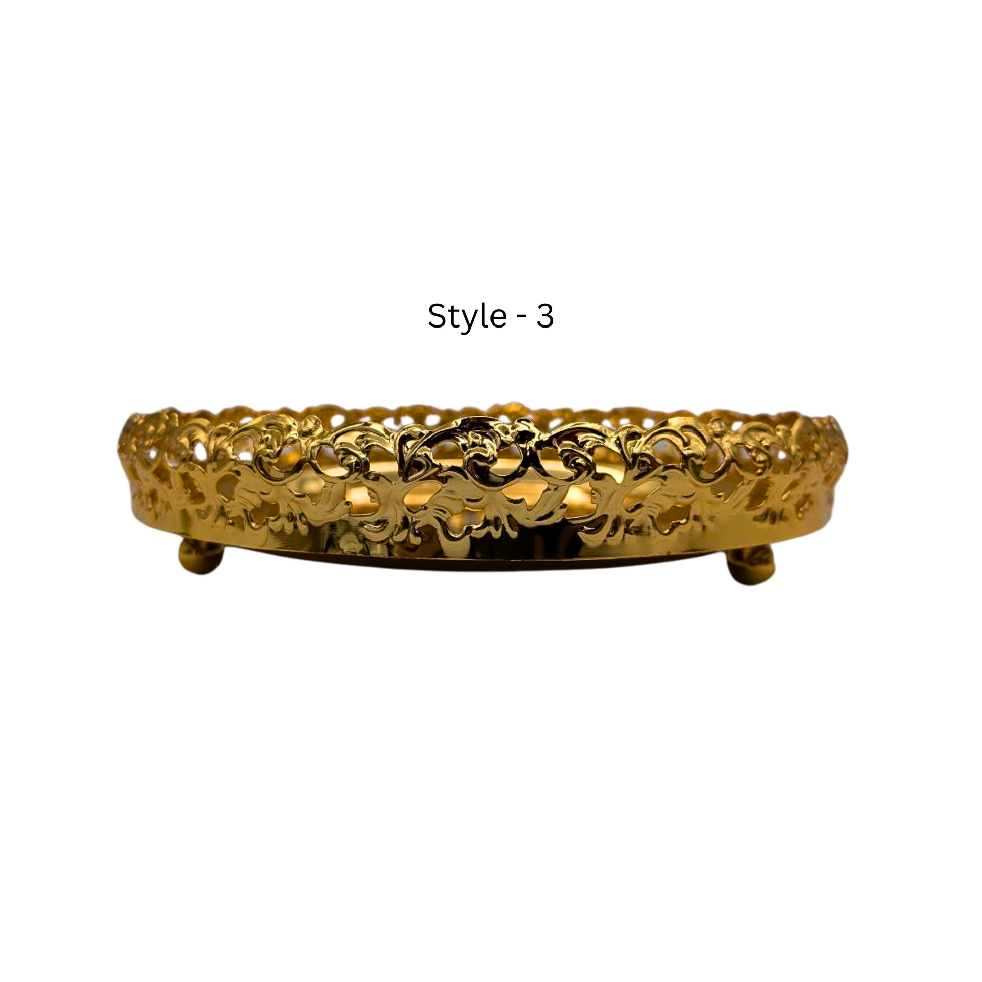 51252Elegant Golden Chrome Serving Tray – 23cm Diameter, Available in 3 Unique Styles