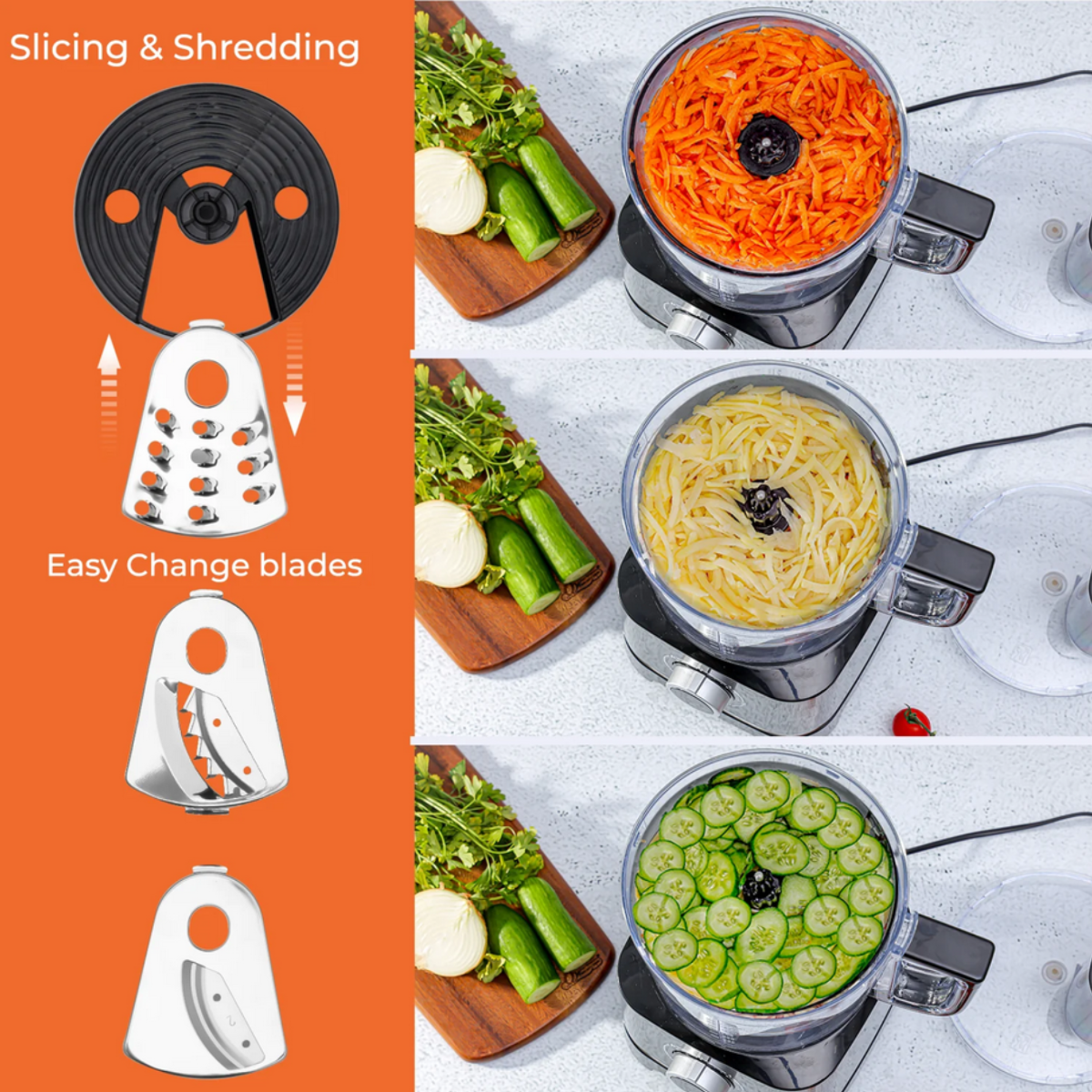 Simple Controls: Enjoy hassle-free operation with manual settings, allowing you to effortlessly control the food processor for precise results.