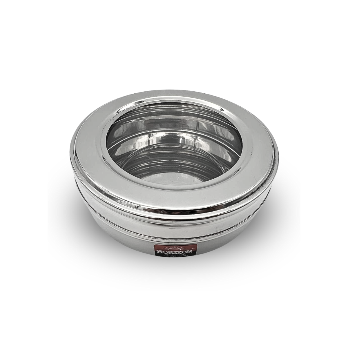 Masala Dabba - Stainless Steel Spice Box with See-Through Lid (14cm)