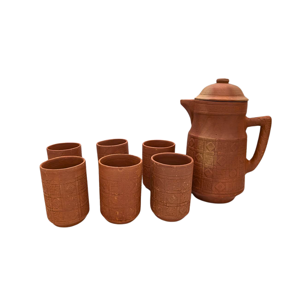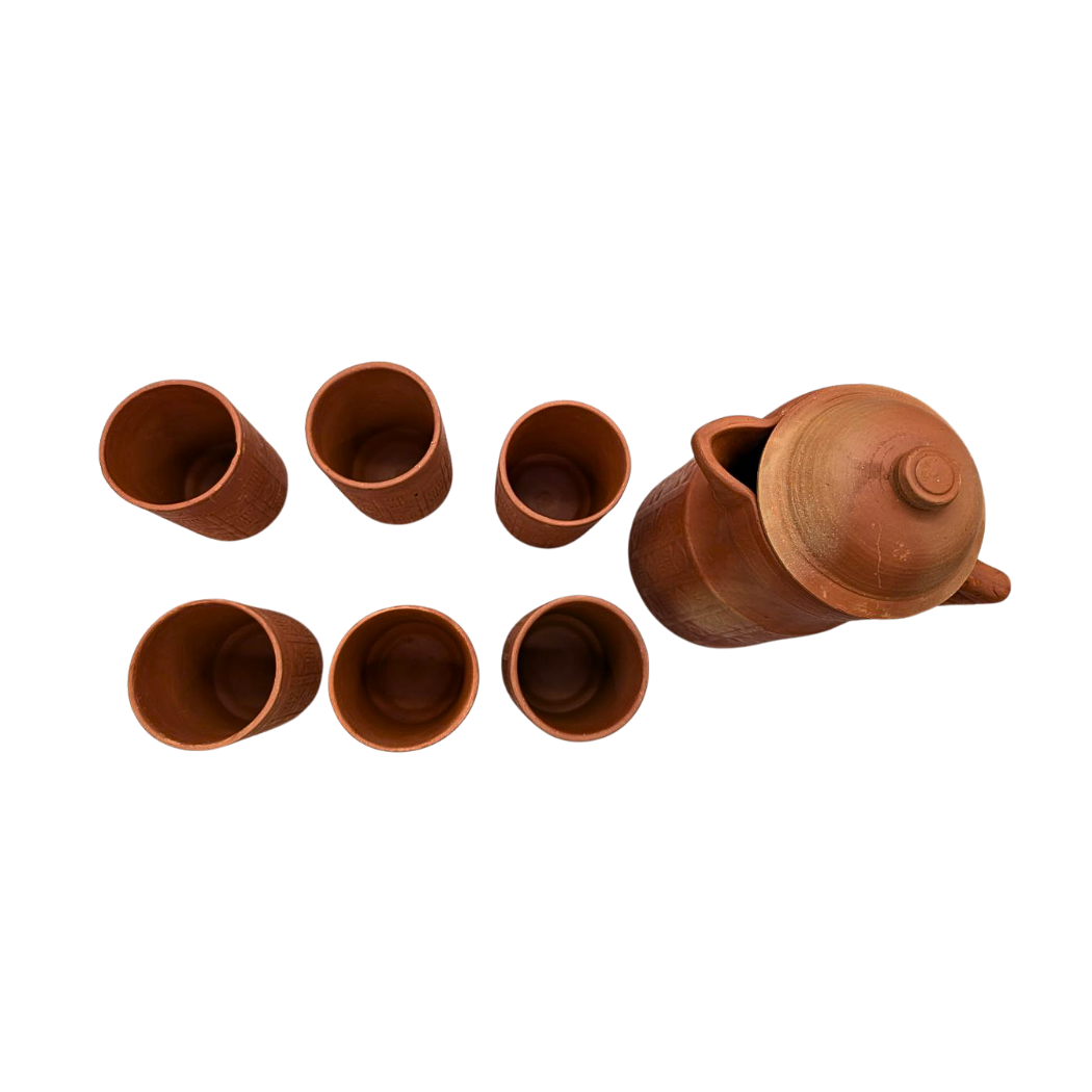 Nuovo Clay Jug and Glass Set – 1 Jug & 6 Glasses (Handcrafted, Natural Variations)