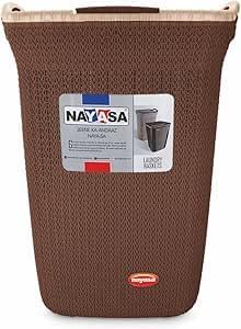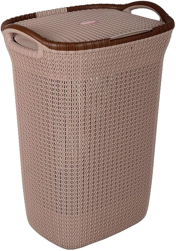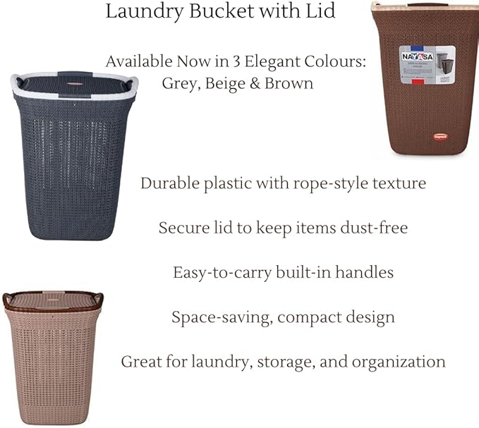 Rope Laundry Basket with Lid – Plastic Storage Hamper with Handles for Clothes, Bathroom & Bedroom – Durable Organizer in Brown, Beige & Grey