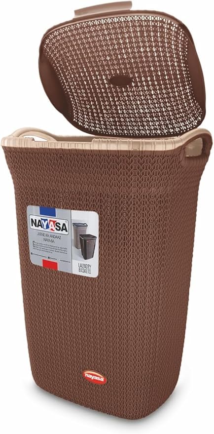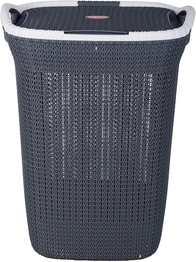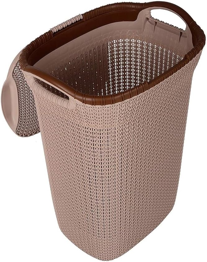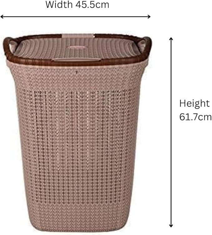 Made from durable, high-quality plastic, this basket features a rope-style textured design, comfortable built-in handles, and a secure lid to keep contents out of sight. Its neutral colours – Brown, Beige, and Grey – make it a perfect fit for any room in your home.